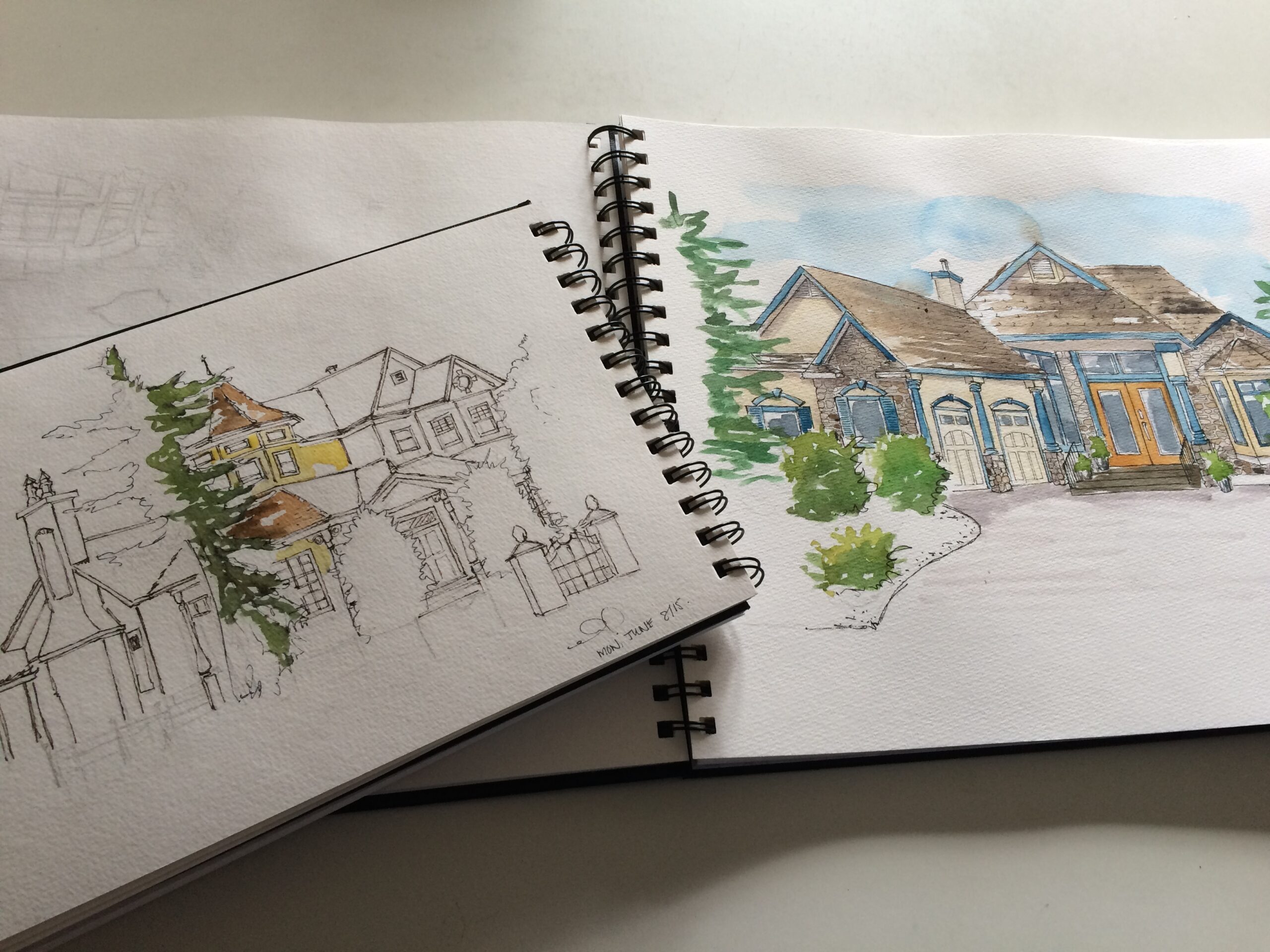 Then the next Monday I was driving through Kensington, saw this cute little corner house and abruptly pulled the car over. Just like that! It was about 11AM. I had all my stuff with me for sketching and painting. Once again, I found myself a little corner of grass in the shade, sat down and started drawing. I was passed by a few people again, and one or two commented. One guy said I must have everything figured out, being able to sit under a tree and draw in the middle of a Monday. In a way, I get it. No, I don’t have everything figured out, far from it. But, it’s the middle of the day, in the middle of a random place, and I have stopped and dropped to do something I love, something I want to be better at. Not everyone takes the time to do that sort of thing for themselves.